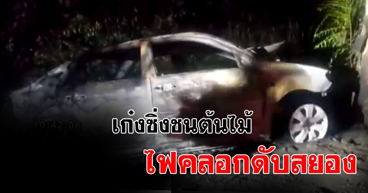 รถเสียหลักตกข้างทางมาชนต้นไม้เกิดไฟไหม้ หรือคนขับเมา