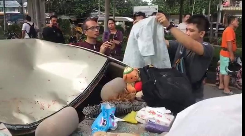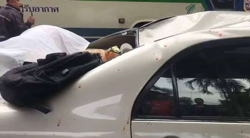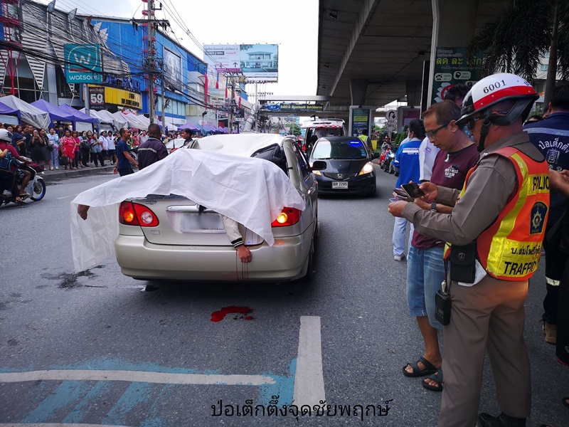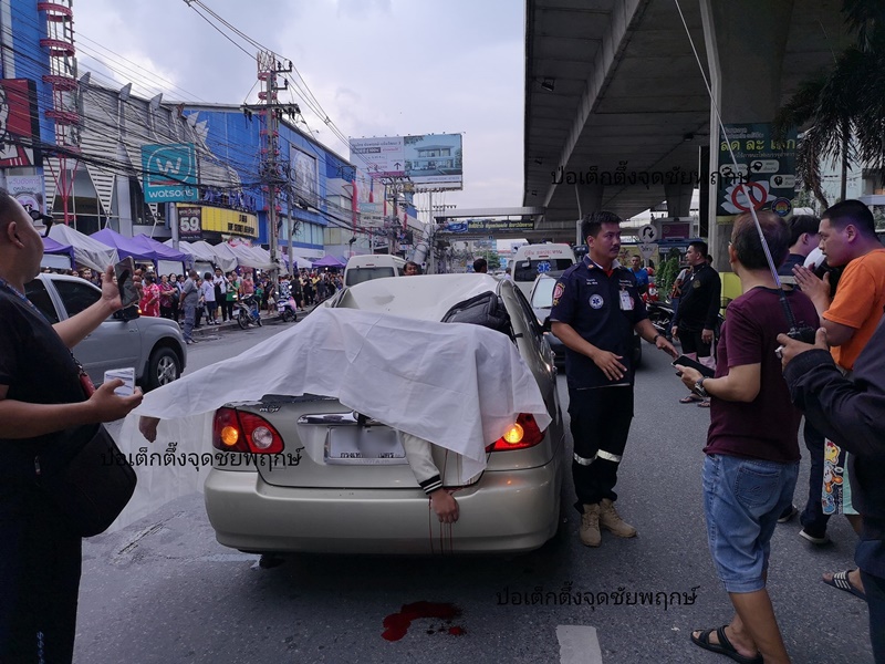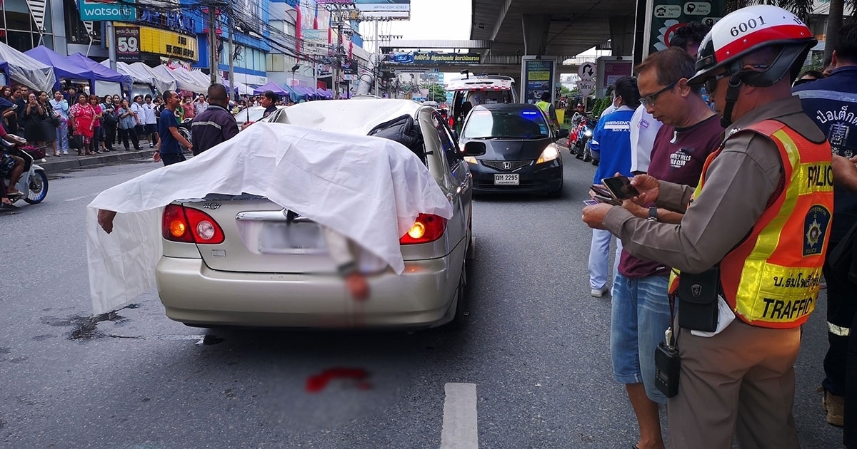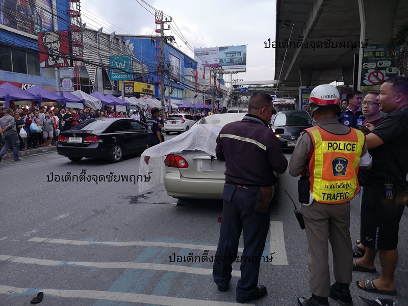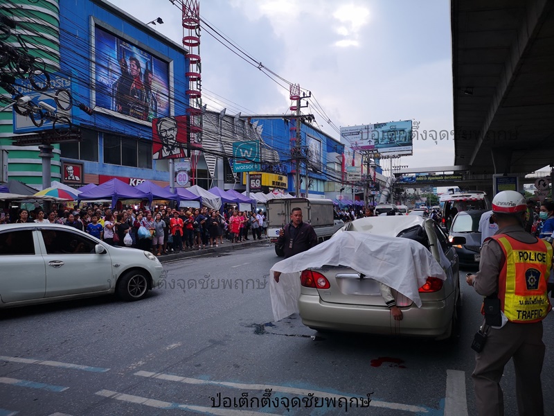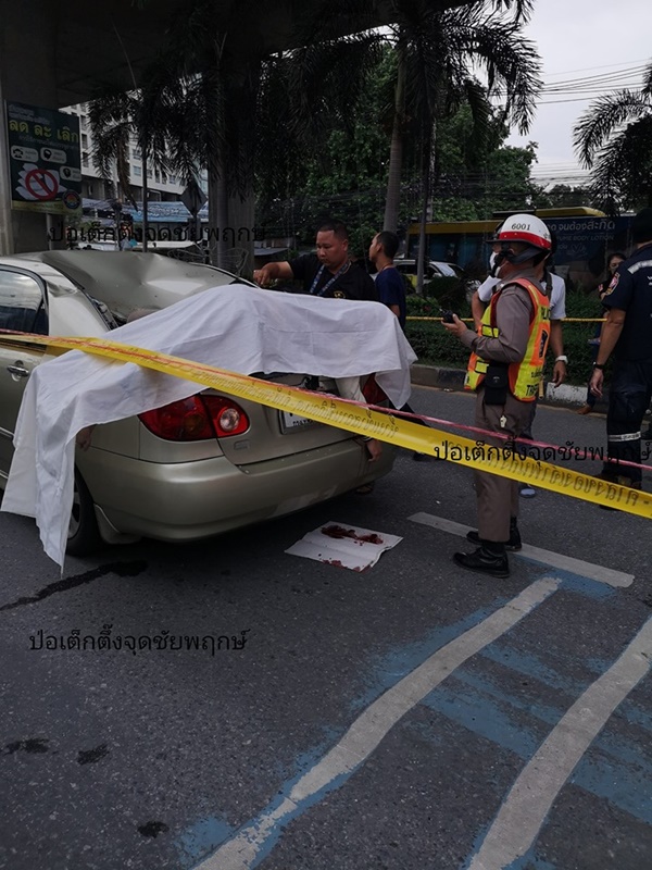 ตกลงมากระแทกกับรถยนต์โตโยต้า สีทอง ที่สัญจรผ่านอยู่ด้านล่าง