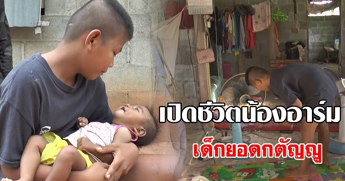 น้องอาร์ม เด็กชายวัย 12 ขอพักการเรียน 1 ปี ทำหน้าที่พี่คนโต เลี้ยงน้อง 4 คน ช่วยตา-ยาย พบสภาพความเป็นอยู่ค่อนข้างลำบาก ทางโรงเรียนเข้าช่วยเหลือเบื้องต้นแล้ว