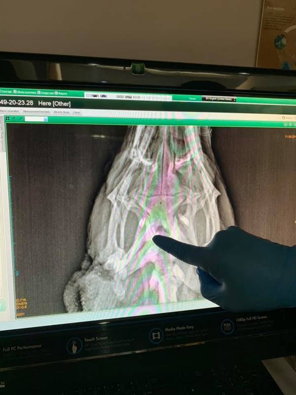 ผลการตรวจคือ กระดูกกะโหลกศีรษะบางส่วนแตก กระดูกคอส่วน C spine