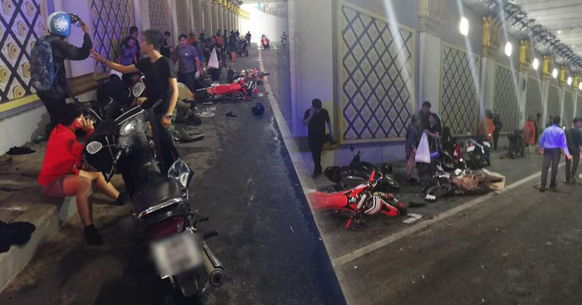 รถยนต์ชนมอเตอร์ไซค์ล้มระเนระนาดใต้ทางลอดฟ้าฮ่าม จ.เชียงใหม่ โซเชียลคาดลงมาจอดหลบฝน ทำแบบนี้อันตรายมาก