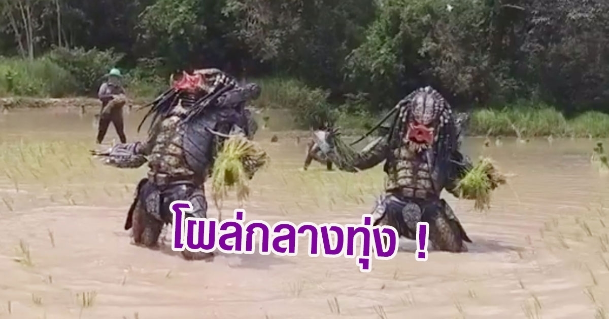 ฮือฮา ! พรีเดเตอร์ โผล่กลางทุ่งนา รับจ้างดำนาหาเงินกลับดาวบ้านเกิด ก่อนล้มหน้าทิ่มไม่เป็นท่า ทำชาวเน็ตฮาสนั่นโซเชียล