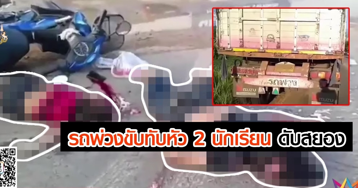 สยอง รถพ่วง 18 ล้อ ขับประกบรถจักรยานยนต์นักเรียนหญิงซ้อน 3 ล้ม ทับหัวสยอง 2 ศพ เพื่อนมาด้วยอีกคนรอด นั่งช็อกเห็นเพื่อนตายต่อหน้า