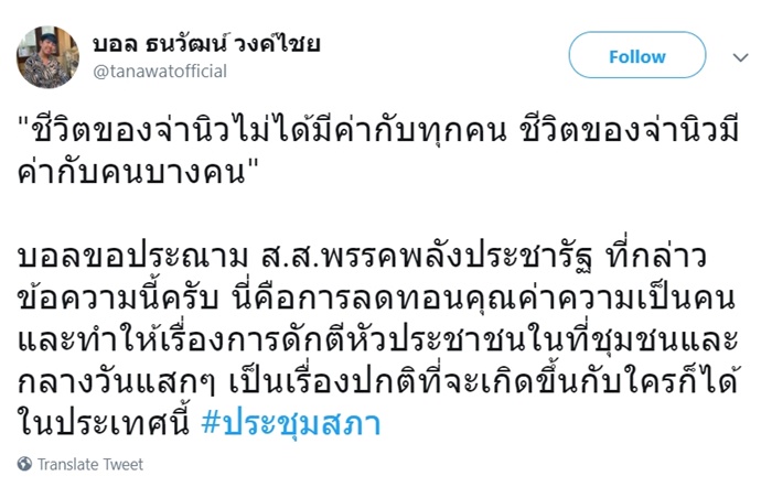 ส.ส.พรรคพลังประชารัฐ ที่พูดถึง จ่านิว สิรวิชญ์ ที่ถูกทำร้ายร่างกาย