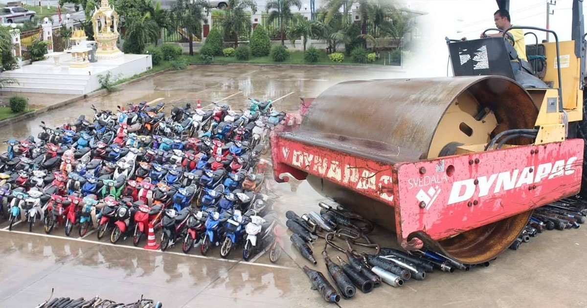 พร้อมทำลายรถ และอุปกรณ์รถจักรยานยนต์ที่ผิดกฎหมาย