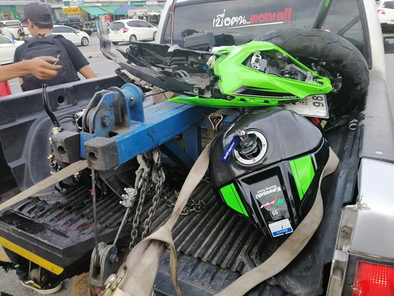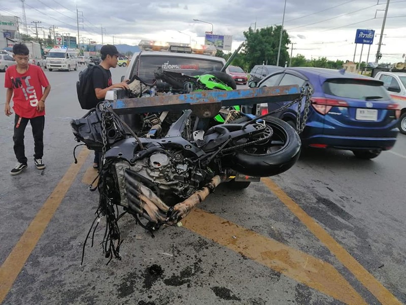โดยมีรายงานว่า เด็กชายวัย 13 ปี เป็นเจ้าของรถจักรยานยนต์บิ๊กไบค์ คาวาซากิ ZX10R 1,000 ซี.ซี. ซึ่งขี่มาด้วยความเร็วสูง จนกระทั่งมาถึงบริเวณจุดเกิดเหตุ ก็ได้ชนเข้ากับรถจักรยานยนต์คันหนึ่งที่ขี่มาตามทาง จากนั้นรถจักรยานยนต์บิ๊กไบค์ ได้ไถลไปชนกับรถยนต์อีกคัน จนเป็นเหตุให้เด็กชายบาดเจ็บสาหัส ข้อเท้าขาด และมีผู้ได้รับบาดเจ็บดังกล่าว