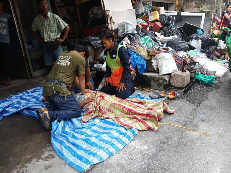 เล่าว่า ขณะกำลังกวาดถนน มีพลเมืองดีวิ่งมาบอกว่าพบผู้หญิงหมดสติ