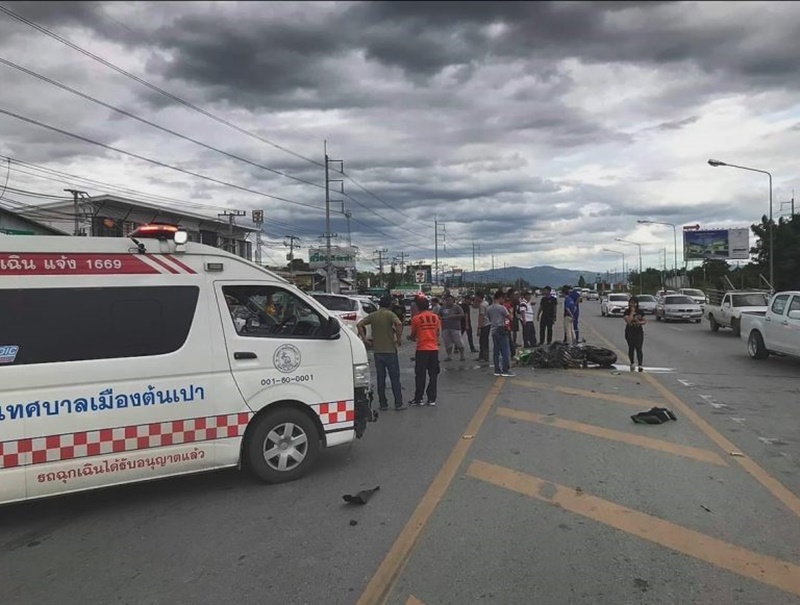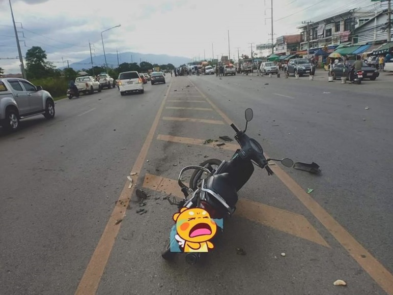 1,000 ซี.ซี. ชนเข้ากับรถจักรยานยนต์ นางศุภลักษณ์ สุยะนนท์ อายุ 60 ปี ซึ่งเป็นคนขี่ และมีเพื่อนร่วมงานซ้อนท้ายออกมาด้วย