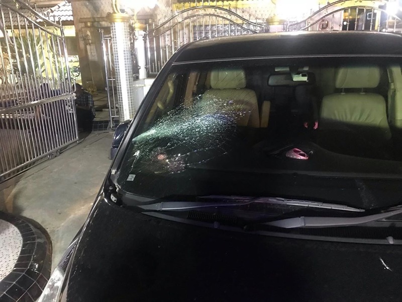 คนร้ายก็พยายามเอามือทุบกระจกแล้วก็เอาขวดใส่น้ำมันที่น่าจะเตรียมอยู่แล้ว