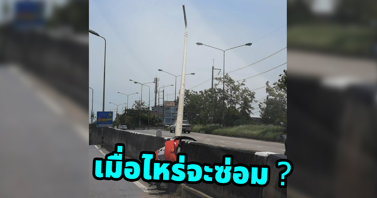 ชาวบ้านร้อง เสาไฟทางถูกรถชนมา 3 เดือน เอียงอย่างไร ก็เอียงอยู่เหมือนเดิม แถมเอียงมากขึ้นเรื่อย ๆ ถามจะซ่อมได้เมื่อไหร่ หรือรอให้มีอุบัติเหตุซ้ำก่อน