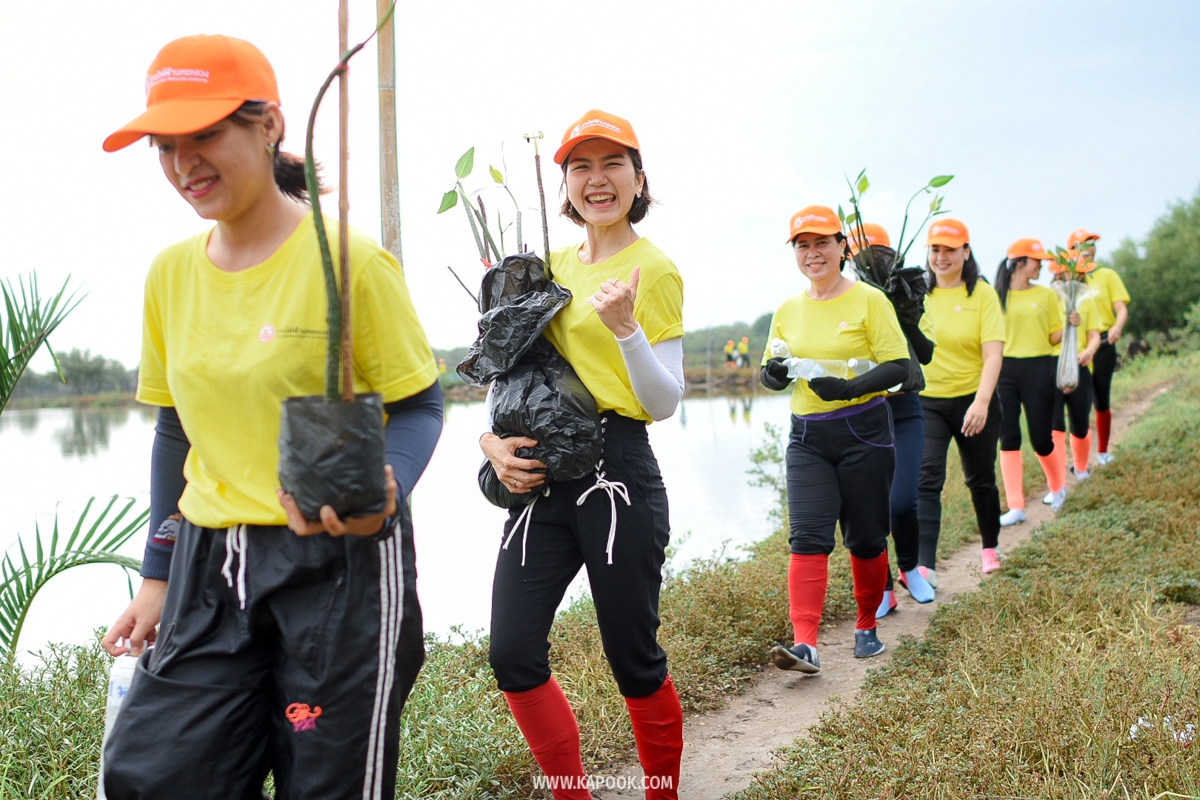 กิจกรรมครั้งนี้ได้รับความร่วมมือเป็นอย่างดีจากพนักงานอาสาของ กฟน. กว่า 300 คน โดยเดินลัดเลาะไปในเส้นทางธรรมชาติกว่า 3 กิโลเมตร มุ่งสู่พื้นที่บ้านแหลมสิงห์ เพื่อปลูกกล้าไม้โกงกาง จำนวน 6,700 ต้น เป็นกำแพงลดความรุนแรงของคลื่นลมพายุก่อนขึ้นสู่ฝั่ง ป้องกันความเสียหายแก่บ้านเรือนของชาวบ้าน ทั้งยังเป็นการสร้างระบบนิเวศชายฝั่ง เป็นแหล่งอาศัยและที่อนุบาลอันสำคัญของสัตว์น้ำในระยะตัวอ่อน ซึ่งแม้ว่าระยะทางจะไกล และเส้นทางไม่สะดวกนัก แต่ก็ยังสามารถเห็นรอยยิ้มจากผู้เข้าร่วมกิจกรรมอยู่ตลอดเวลา