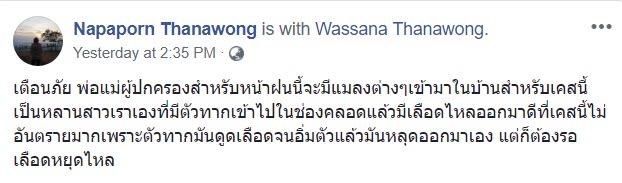 คุณแม่ได้ฝากเตือนถึงผู้ปกครองทุก ๆ คนให้ระมัดระวังให้มาก