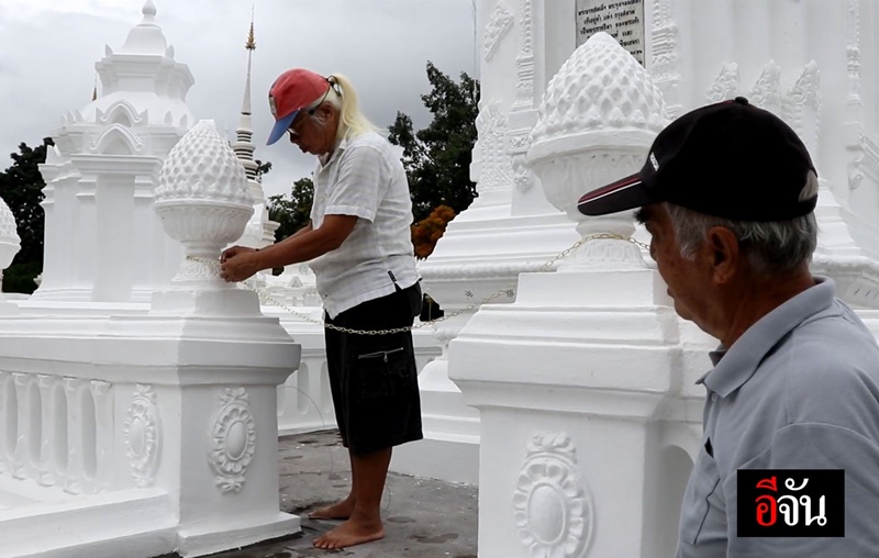 โดยระหว่างที่กำลังติดตั้งป้ายอยู่ก็มีนักท่องเที่ยวชาวต่างชาติที่เดินทางมาเที่ยวชมภายในกู่เจ้าหลวงไม่ขาดสาย