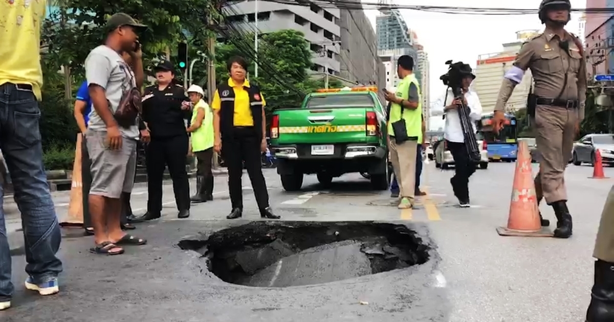 เกิดเหตุหลุมลึกขนาดใหญ่ บริเวณถนนเพชรบุรี ฝั่งขาเข้า ช่องทางที่ 2 จากซ้าย มีขนาดความกว้าง 3 เมตร ยาว 6 เมตร ลึก 1 เมตร จุดเกิดเหตุอยู่ใกล้กับอาคารวานิช และทางลงทางด่วนเพชรบุรี ฝั่งขาเข้า มุ่งหน้าประตูน้ำ