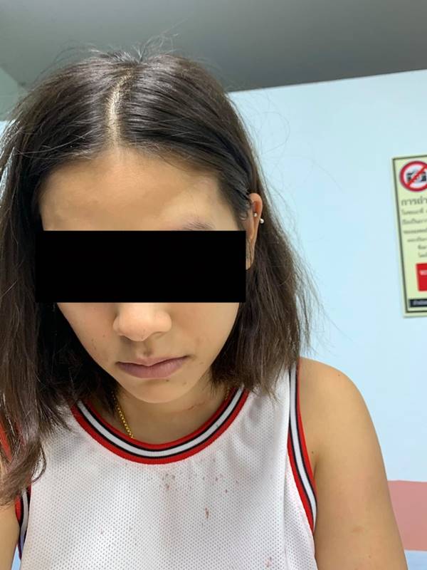 เธอจึงร้องขอความช่วยเหลือ คนร้ายก็ขึ้นคร่อมและใช้หมอนจะกดที่ใบหน้า แต่เธอก็ต่อสู้ป้องกันตัวลุกขึ้นมาบีบคอคนร้าย และคนร้ายก็บีบคอเธอ สุดท้ายคนร้ายก็วิ่งหนีออกทางด้านระเบียงรีสอร์ต และพบว่ารองเท้าแตะ Nike และเงินสด 1,000 บาท ของเธอหายไป จากนั้นเธอก็รีบวิ่งไปหาแฟนและน้องชายซึ่งนอนอยู่ห้องตรงข้าม และโทร. หาพี่สาว ก่อนเดินไปที่เคาน์เตอร์เพื่อขอดูกล้องวงจรปิดกับสอบถามประวัติคนเข้าพัก แต่คนดูแลพูดบ่ายเบี่ยงว่า "แล้วจะให้ผมทำไง" จนพี่สาวกับเธอโวยวายบอกให้โทร. เรียกเจ้าของ จึงยอมไปตามเจ้าของมา แล้วเธอก็ไปแจ้งความที่โรงพักและตรวจร่างกาย พอกลับมาคนที่บอกว่าเป็นลูกเขยของเจ้าของก็บอกว่ากล้องวงจรปิดรีสอร์ตใช้ไม่ได้ทั้งหมด และก็ไม่มีหลักฐานของคนที่มาเข้าอยู่