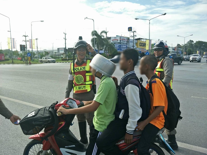 ตำรวจเผยภาพโมเมนต์ชวนขำ 3 เด็กนักเรียนขี่รถมอเตอร์ไซค์ไม่สวมหมวกกันน็อก ตกใจเจอตำรวจ คว้าหม้อครอบหัวหมับ ล่าสุดประกาศตามหาน้อง ๆ มารับหมวกกันน็อกฟรีได้เลย