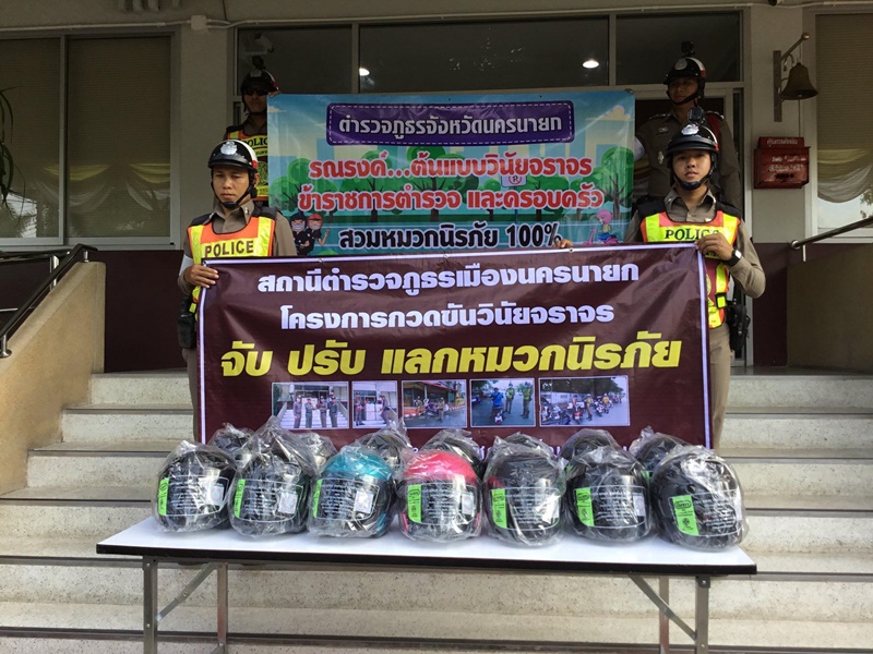 ในภาพครับ...ติดต่อมารับหมวกนิรภัยจากงานงานจราจร สภ.เมืองนครนายก