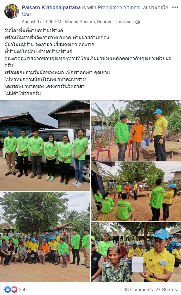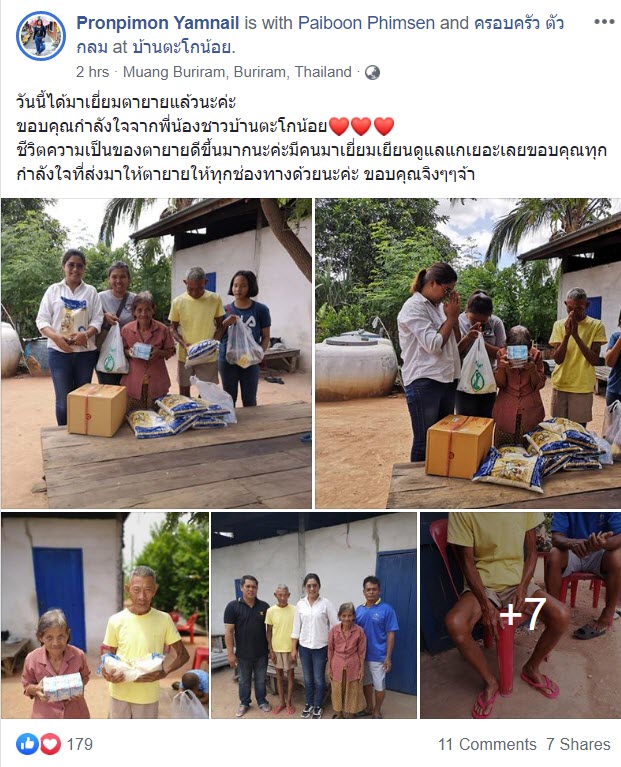 ความคืบหน้าเกี่ยวกับเรื่องนี้ วันที่ 11 สิงหาคม 2562 สปริงนิวส์ รายงานว่า สองตายายดังกล่าวทราบชื่อคือ คุณตาทองแดง ศรีทอง อายุ 75 ปี และ คุณยายสนั่น กระโจมทอง อายุ 78 ปี ซึ่งหลังจากที่เรื่องราวปรากฏเป็นข่าว หน่วยงานที่เกี่ยวข้องทั้งภาครัฐและเอกชน ได้เดินทางลงพื้นที่ช่วยเหลือแล้ว