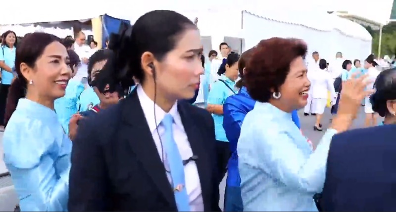 พระบรมราชชนนีพันปีหลวง ก่อนเดินมาพูดคุยกับข้าราชการในพระองค์