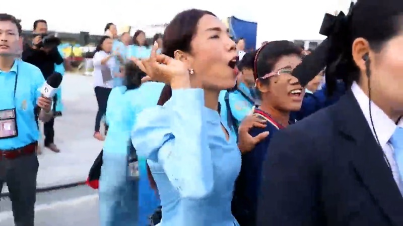 มีประชาชนบางส่วนมายืนให้กำลังใจ พร้อมตะโกนว่านายกรัฐมนตรีสู้ ๆ ขออย่าท้อ