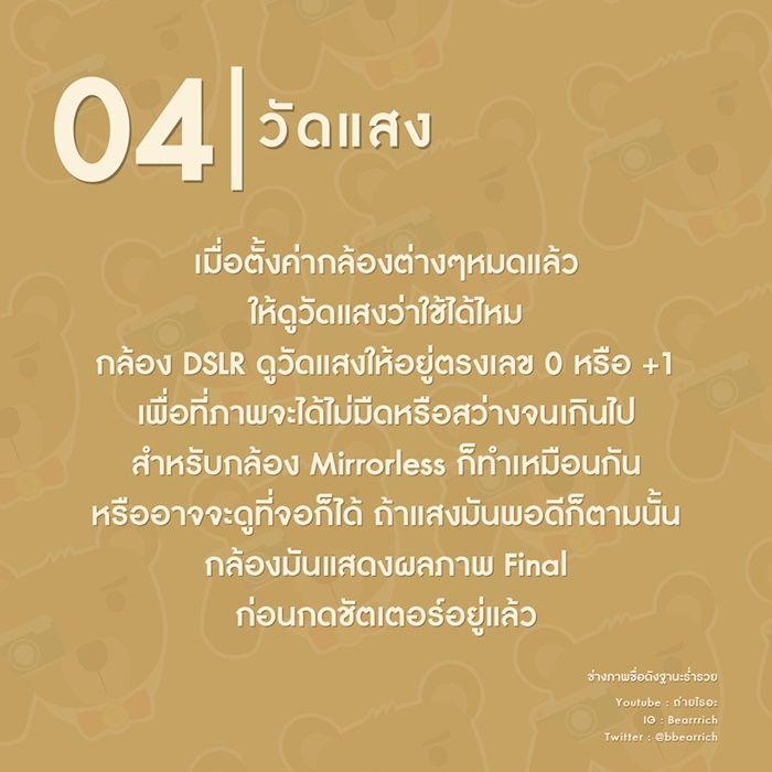 สำหรับเรื่องการชดเชยแสงนั้นให้ตั้งไปอยู่ที่ 0 หรือ +1