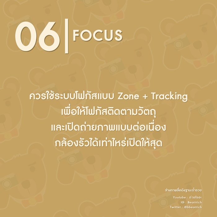 เพื่อให้ภาพไม่มืดหรือสว่างจนเกินไป ขณะที่เรื่องการโฟกัสควรใช้ระบบ Zone +