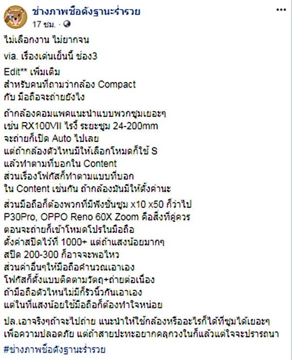 ข้อมูลจาก เพจ ช่างภาพชื่อดังฐานะร่ำรวย
