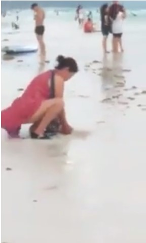 โดยเจ้าหน้าที่ได้กันพื้นที่บริเวณรอบชายหาดในรัศมี 100 เมตร เพื่อที่จะทำความสะอาด และมีการติดป้ายไว้ว่า "ห้ามว่ายน้ำ กำลังทำความสะอาดในพื้นที่เป็นเวลา 48-72 ชั่วโมง" ทั้งนี้ ในคลิปวิดีโอได้เผยให้เห็นภาพของนักท่องเที่ยวต่างชาติคนหนึ่ง ที่ปล่อยให้เด็กไปขับถ่ายตรงชายหาด พร้อมกับภาพที่ผู้หญิงอีกคนฝังผ้าอ้อมลงในทราย และคลิปนี้ก็เป็นที่พูดถึงเป็นอย่างมากบนโลกออนไลน์