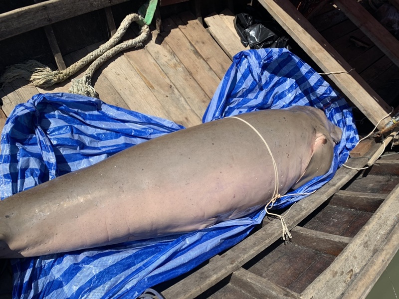 เผยภาพสลด พบพะยูนเพศผู้ น้ำหนัก 240 กิโลกรัม ตัวยาวกว่า 2.6 เมตร มีรอยแผลตามลำตัว และรอยช้ำที่ใบพายด้านซ้าย เกยตื้นตายที่อ่าวต้นไทร จ.กระบี่
