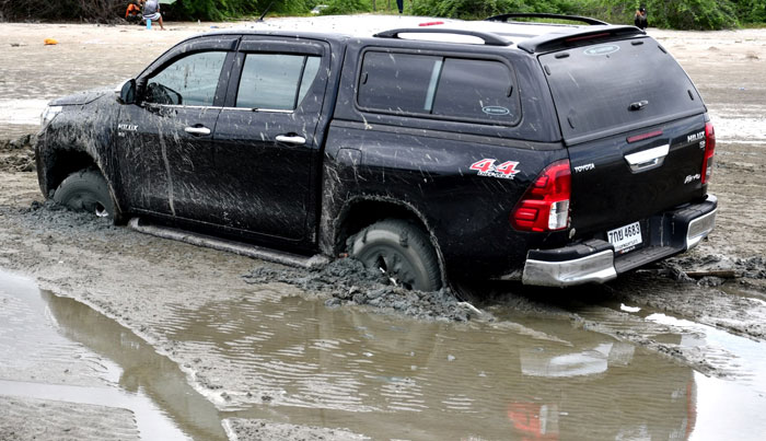 หนุ่มไต้หวันเช่ารถขับเที่ยวไทย หลงทางลงริมหาด รถติดหล่ม - น้ำขึ้นพอดี เจ้าหน้าที่อุทยานแห่งชาติเขาสามร้อยยอดเร่งช่วย