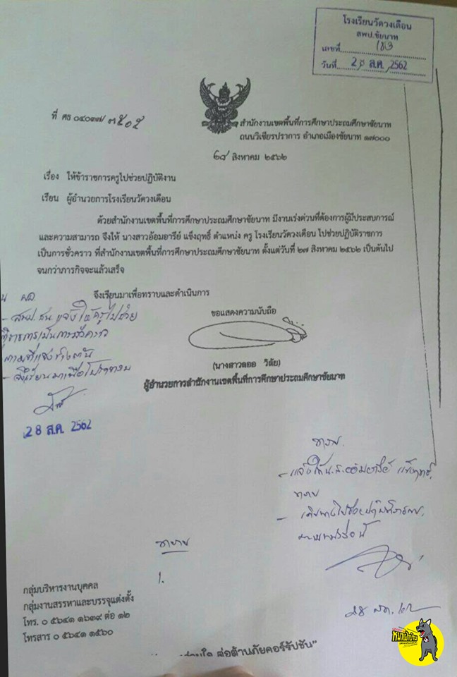 สพป.ชัยนาท โดยมีคำสั่งสั่งย้าย ครูอ้อม