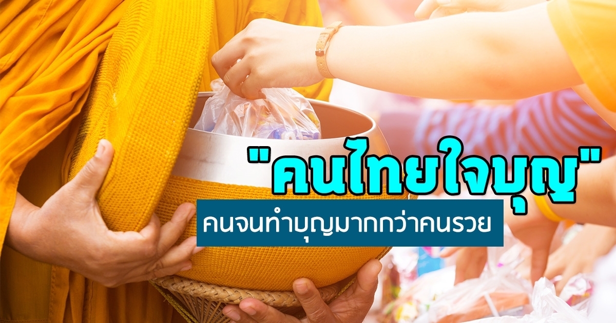 ศูนย์อีไอซี เผยข้อมูลสำรวจคนไทย 96 เปอร์เซ็นต์ จ่ายเงินเพื่อการกุศล พบคนรายได้น้อยทำบุญมากกว่าคนรายได้เยอะ และต่างจังหวัดชอบทำบุญมากกว่ากรุงเทพฯ