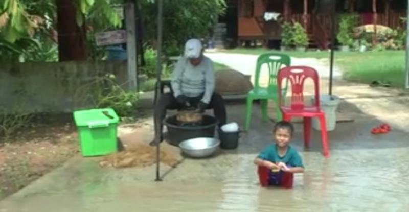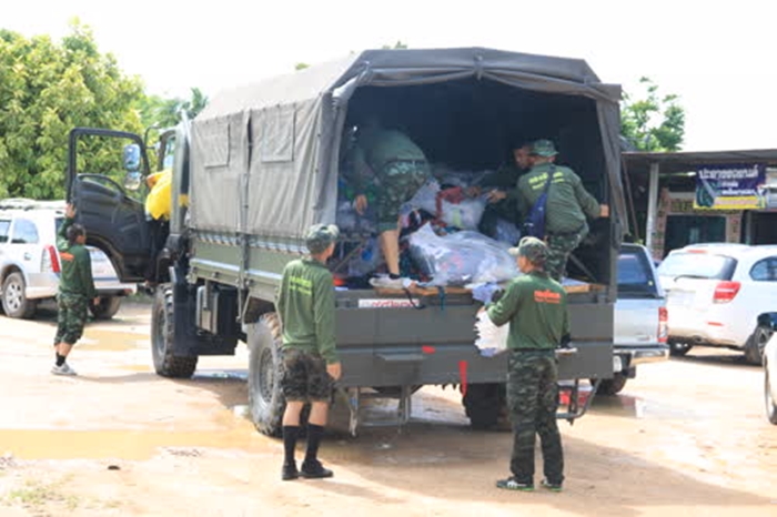 บริเวณทางเข้าหมู่บ้านได้จัดตั้งครัวพระราชทาน ช่วยเหลือผู้ประสบอุทกภัยเพื่อประกอบอาหารเลี้ยงราษฎรผู้ประสบภัยที่ออกมาจากพื้นที่ไม่ได้ จำนวนกว่า 120 ครัวเรือน ซึ่งอาหารส่วนใหญ่เป็นอาหารที่รับประทานได้ง่าย รวดเร็ว และมีคุณค่าทางโภชนาการในการให้พลังงาน อาทิ ข้าวราดแกง ส้มตำ และไข่เจียว และนำกำลังพลจากกองพันทหารสื่อสารที่ 6 สังกัดกองพลทหารราบที่ 6 จำนวน 20 นาย ลำเลียงอาหารเข้าไปส่งให้ประชาชนที่บ้าน รวมถึงอพยพประชาชนบางส่วนไปยังที่ปลอดภัย