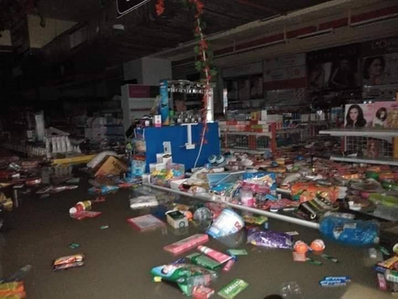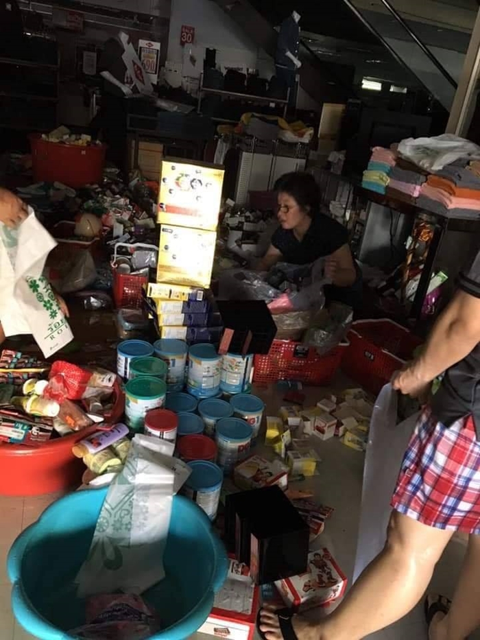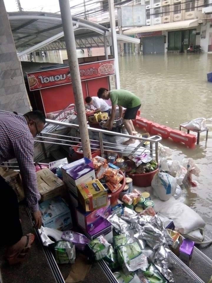 ภาพน้ำท่วม จ.ร้อยเอ็ด พบว่าแผนกซูเปอร์มาร์เกตในห้างร้อยเอ็ดพลาซ่า ห้างสรรพสินค้าเก่าแก่ของร้อยเอ็ด น้ำท่วมสูงเกือบมิดชั้นใต้ดิน สินค้าลอยน้ำเกลื่อน ล่าสุดสูบน้ำออกแล้ว