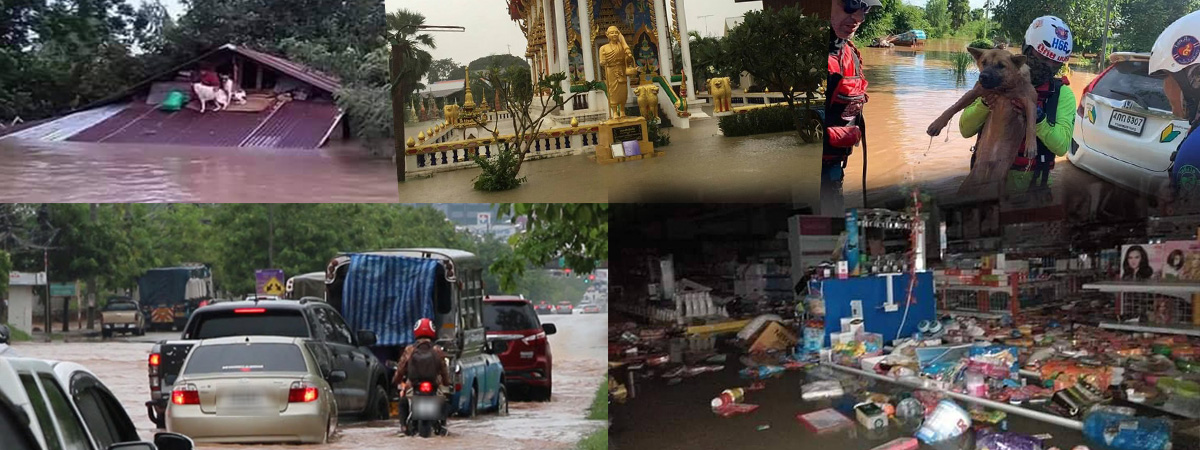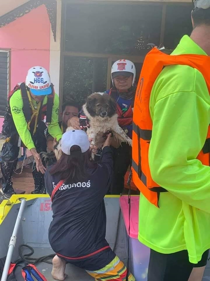 ภาพขณะเจ้าหน้าที่กู้ภัย ช่วยชาวบ้าน พร้อมหมา แมวและสัตว์เลี้ยง ในพื้นที่ อ.วังทอง จ.พิษณุโลก รวมทั้ง จ.ยโสธร หลังน้ำท่วมสูง 1-2 วันที่ผ่านมา