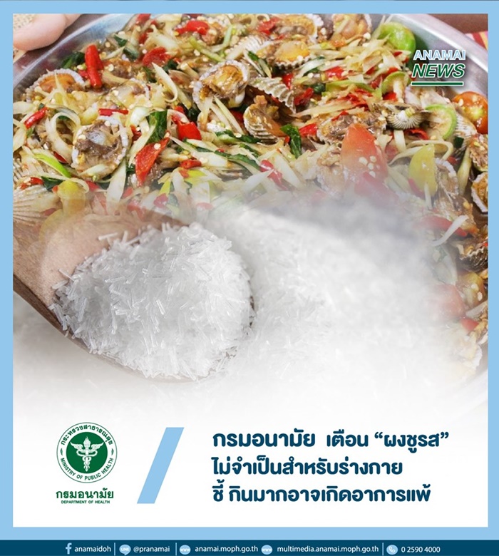 กรมอนามัย เตือน หากกินผงชูรสมากเกินไปอาจก่อให้เกิดอันตรายต่อสุขภาพได้ หากแพ้หัวใจเต้นช้าลง หายใจไม่สะดวก ร้ายแรงถึงขั้นเป็นอัมพาตชั่วคราวได้