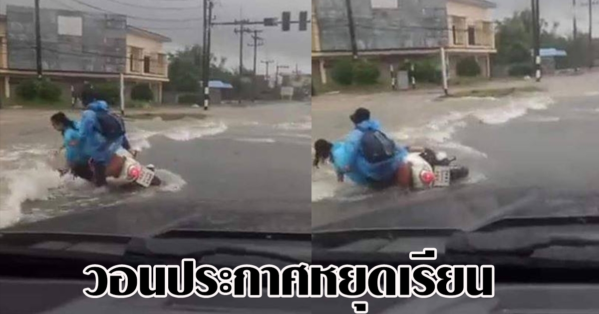 เผยภาพ 2 เด็กนักเรียนหญิง ขี่ จยย. ลุยน้ำท่วมไปโรงเรียน สุดท้ายรถคว่ำไม่เป็นท่า โซเชียลแห่สงสารเด็ก วอนโรงเรียนสั่งหยุดเรียนไปก่อนเพื่อความปลอดภัย