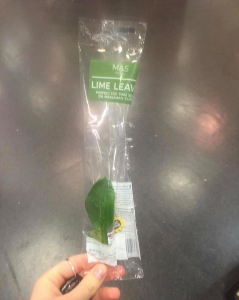 ใบมะกรูด ถูกห่อด้วยถุงยาว ๆ