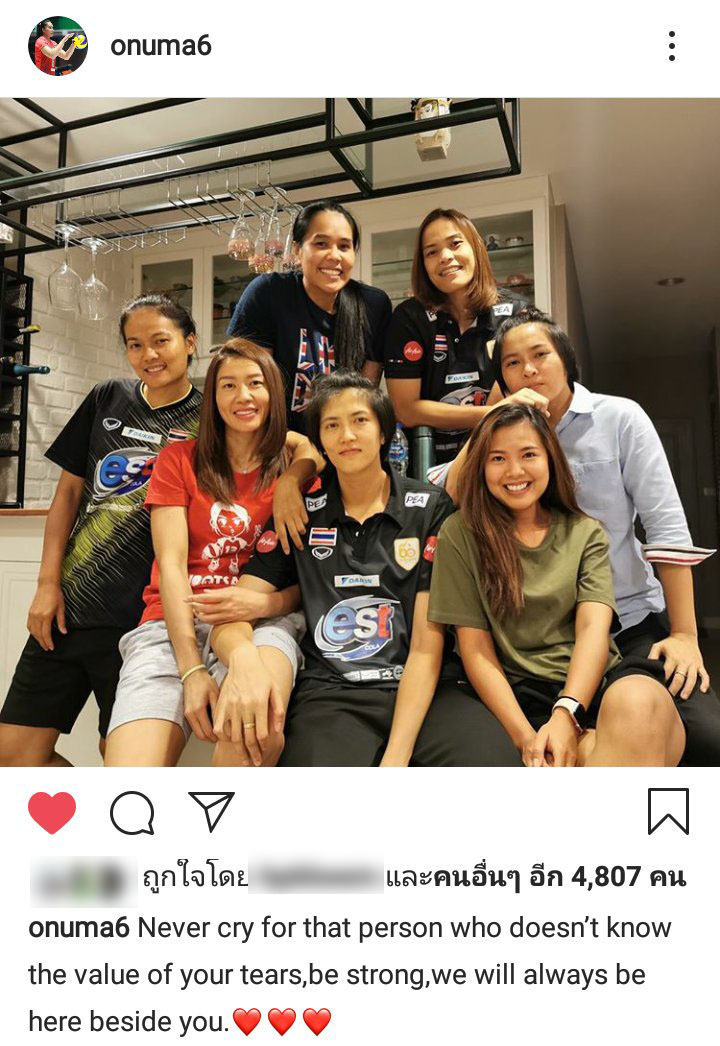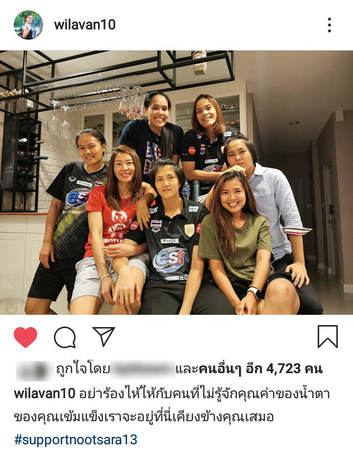 นักวอลเลย์บอลทีมชาติไทย แถมยังมีข้อความให้กำลังใจเป็นภาษาอังกฤษ