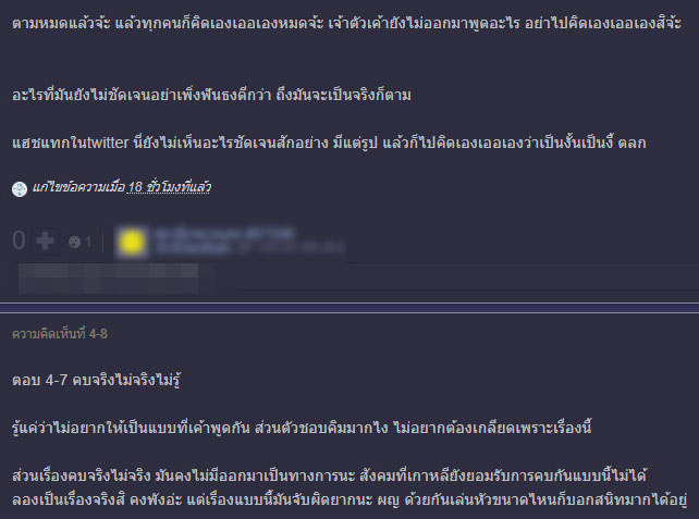 ทั้งนี้ มีชาวเน็ตเปิดประเด็นในเว็บไซต์พันทิปดอทคอม เพราะต่างอยากรู้ว่าเกิดอะไรขึ้นกับนุศรา โดยมีชาวเน็ตหลายคนคิดว่า อาจเป็นเพราะนุศราเลิกกับ คิมยอนคุง สาวนักตบทีมชาติเกาหลีใต้ ซึ่งหลายคนมองว่าอาจเป็นไปได้ เพราะบรรดาเพื่อนนักวอลเลย์บอลของนุศรา ไม่ว่าจะเป็น หน่อง ปลื้มจิตร์, กิ๊ฟ วิลาวัณย์, อร อรอุมา, นา วรรณา และ ปู มลิกา ต่างก็อันฟอลโลอินสตาแกรมของ คิมยอนคุง ไปแล้ว