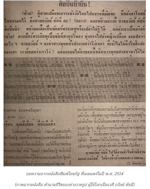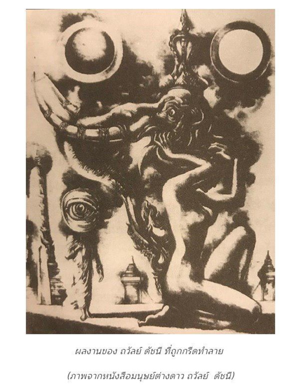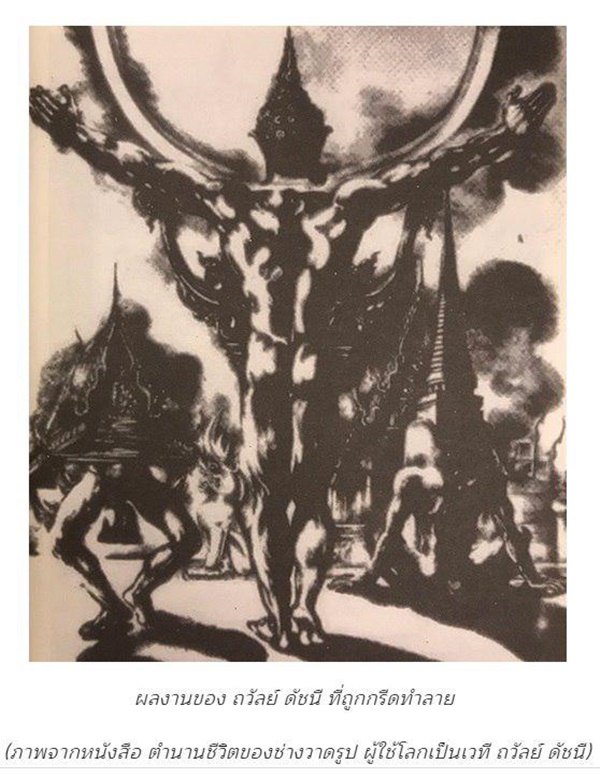 ย้อนดูภาพ อ.ถวัลย์ ดัชนี เมื่อ 48 ปีก่อน ถูกกลุ่มนักเรียนบุกทำลายย่อยยับ ฐานเขียนภาพลบหลู่พระพุทธศาสนา "พระพุทธรูปอุลตร้าแมน" ไม่ใช่ความขัดแย้งครั้งแรกของวงการศิลปะไทย