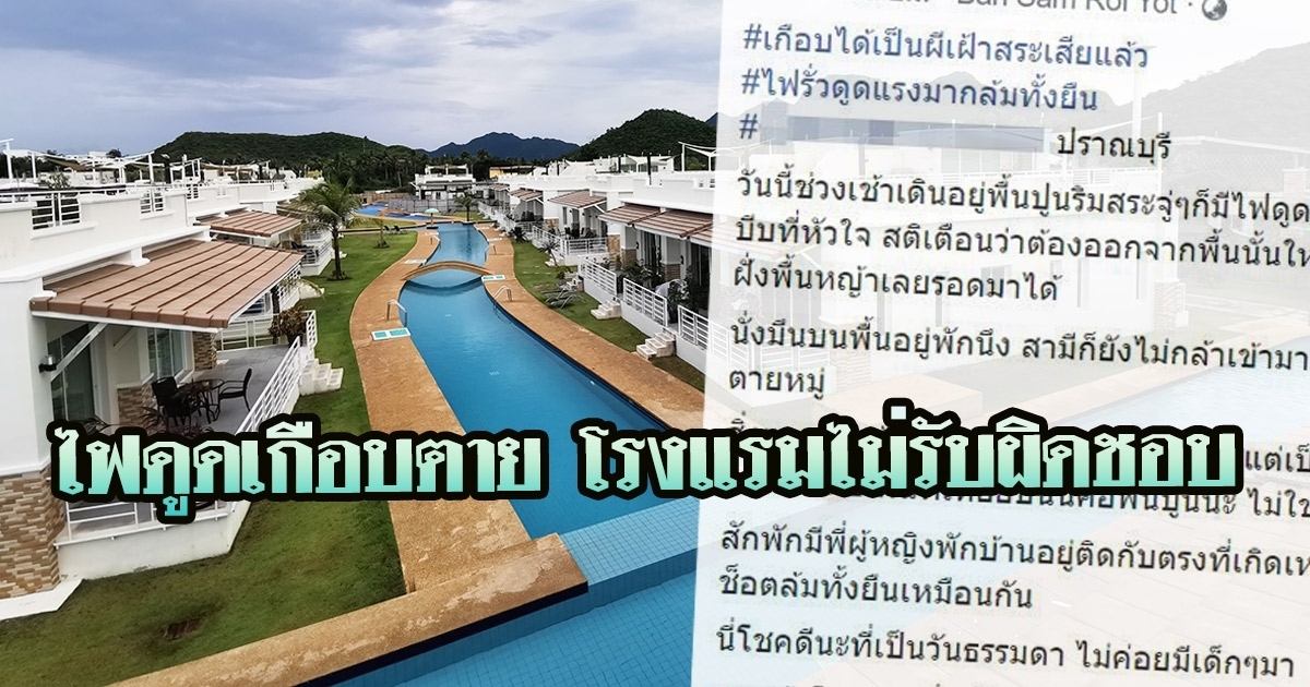 สาวแชร์ประสบการณ์ เข้าพักโรงแรมชื่อดัง ปราณบุรี หวิดเป็นผีเฝ้าสระ ถูกไฟรั่วดูดล้มทั้งยืน ด้านโรงแรมไม่คืนเงิน และยังบอกอุบัติเหตุเกิดขึ้นได้ทุกที่ แฉมีคนเคยโดนมาแล้วเพียบ