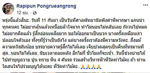 ข้อมูลจาก เฟซบุ๊ก Rapipun Pongrueangrong