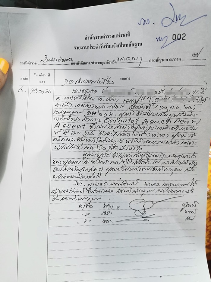 และได้เข้าลงบันทึกประจำวันที่สถานีตำรวจแล้วด้วย