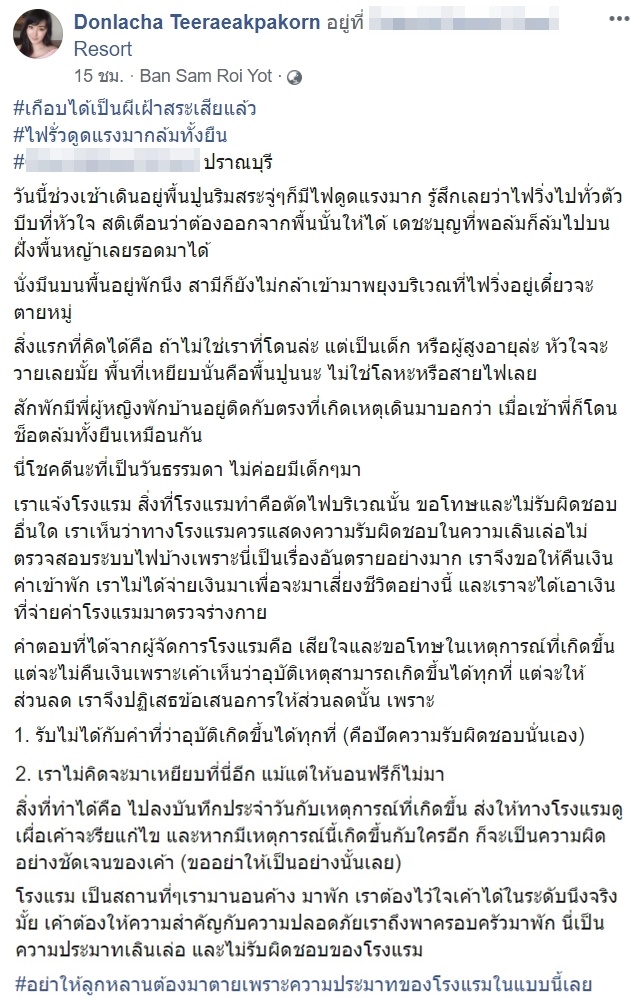 ทั้งนี้ รีสอร์ตขออภัยอีกครั้งที่ทำให้เกิดความข้องใจของลูกค้าทุกท่าน