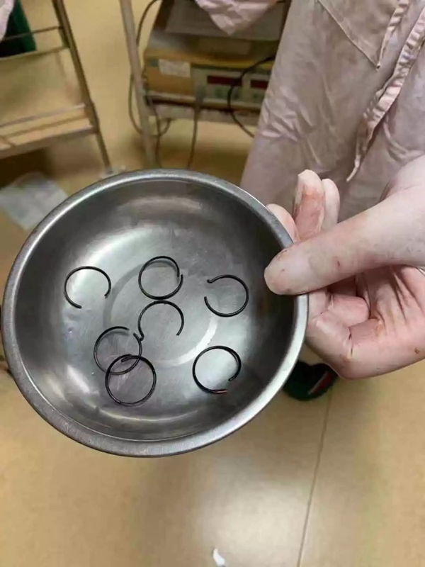 ดร.ฝู จุนหง แพทย์ผู้ชำนาญโรคสตรี เผยว่า ลวดสปริงดังกล่าวที่มีความยาวประมาณ 5 เซนติเมตร แต่ทางแพทย์ไม่สามารถดึงออกมาได้แบบปกติ เนื่องจากมันถูกหุ้มไปด้วยเนื้อเยื่อบริเวณดังกล่าว เพราะติดตรงนั้นเป็นเวลานาน ซึ่งทางคนไข้รับว่า ใส่มันเข้าไปนานประมาณปีครึ่ง แพทย์จึงใช้เครื่องมือตัดออกเป็น 7 ส่วน แล้วค่อย ๆ นำมันออกมาทีละชิ้น โดยการผ่าตัดรักษาครั้งนี้ใช้เวลานาน 40 นาที