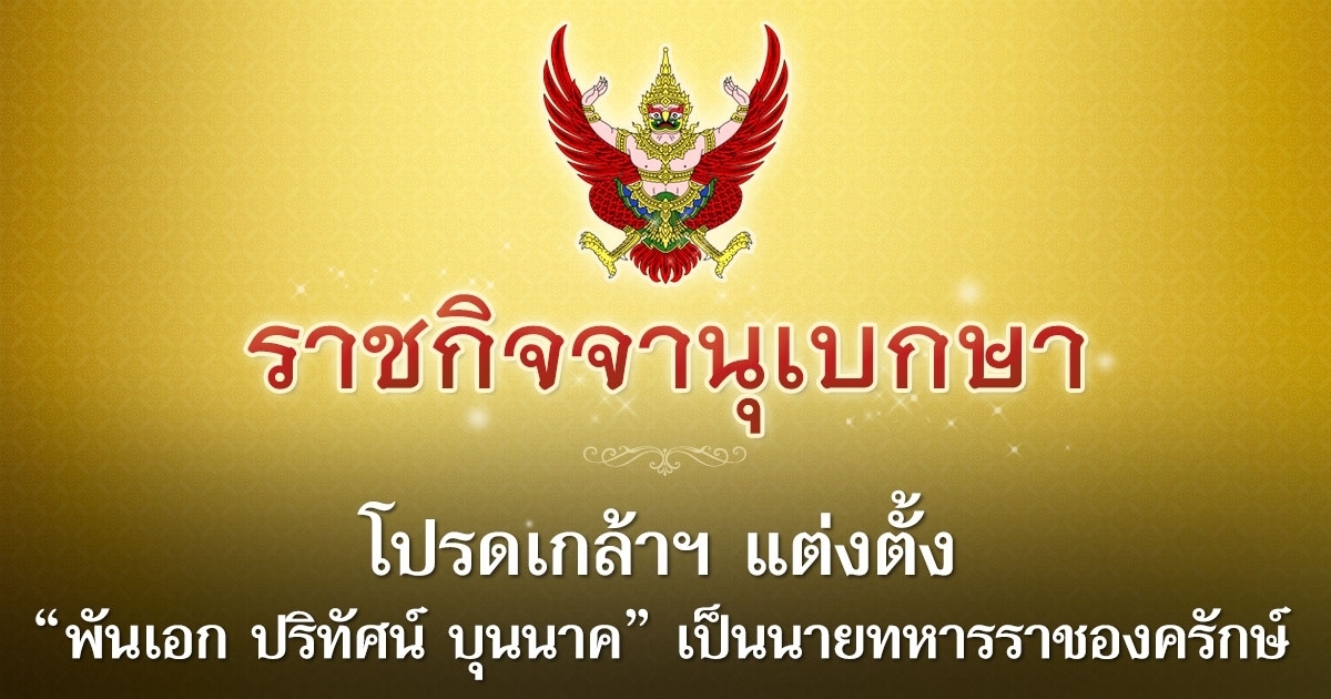 พระบาทสมเด็จพระเจ้าอยู่หัว มีพระบรมราชโองการโปรดเกล้าโปรดกระหม่อมแต่งตั้งให้ พันเอก ปริทัศน์ บุนนาค เป็น นายทหารราชองครักษ์