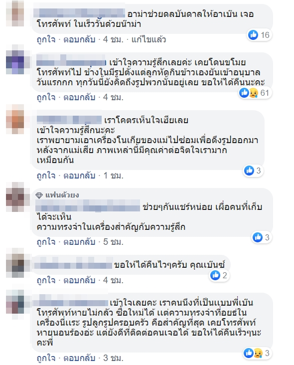 ซึ่งแฟนคลับต่างเข้ามาให้กำลังใจ และขอให้ เบ๊น อาปาเช่ ได้โทรศัพท์คืน โดยบอกว่า จริง ๆ แล้วซื้อโทรศัพท์ใหม่ก็ซื้อได้ แต่ภาพความทรงจำในเครื่องเอากลับมาไม่ได้ โดยเฉพาะภาพอาม่าที่เสียไปแล้วด้วย