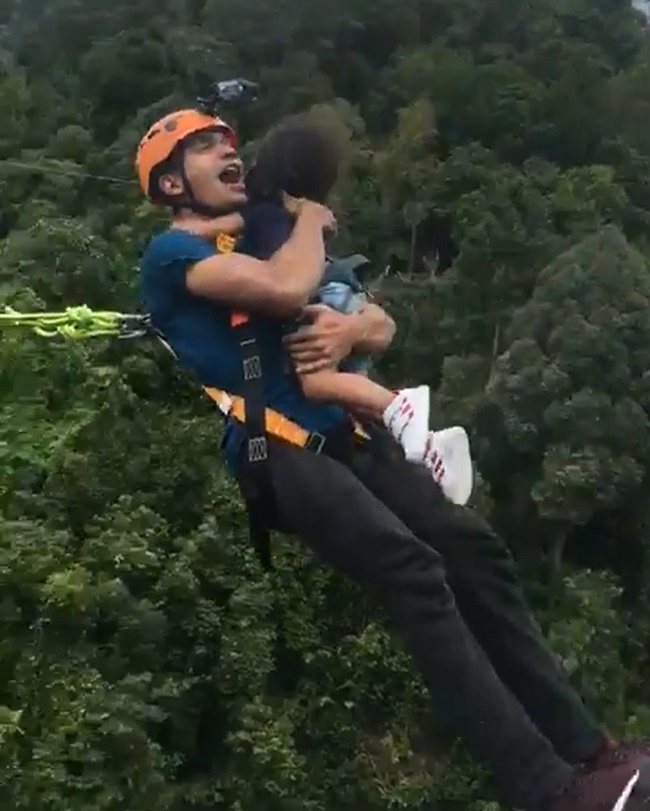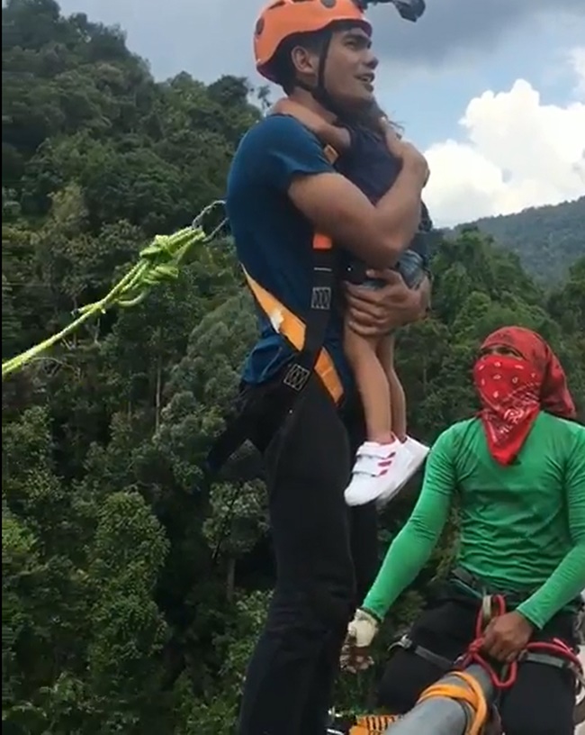 พ่อชาวมาเลเซียรายหนึ่งได้ตกเป็นที่วิพากษ์วิจารณ์สนั่น หลังจากที่เขาได้โพสต์คลิปสุดหวาดเสียว เผยให้เห็นช่วงเวลาขณะที่กำลังอุ้มลูกสาวตัวน้อยวัยเพียง 2 ขวบไว้แนบอก ก่อนกระโดดบันจี้จั๊มพ์ไปพร้อมกัน ดิ่งลงช่องว่างระหว่างหุบเขาจากสะพานสูงเกือบ 60 เมตร