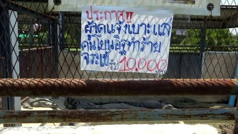โดยนายนราธิป เจนการช่าง และนายภานุ ลาภมี นักศึกษา กล่าวว่า มีคนร้ายเป็นชายเข้ามาภายในหมวดประมง ใช้ก้อนอิฐที่ไว้สำหรับหนุนพื้นเพื่อขึ้นไปดูจระเข้ โยนข้ามรั้วที่สูงกว่า 4 เมตร เข้าไปภายในบ่อ ทำให้จระเข้ที่เลี้ยงไว้จำนวน 14 ตัว ได้รับบาดเจ็บ 4 ตัว การกระทำดังกล่าวถือว่าเป็นการทารุณกรรมสัตว์ จึงอยากให้ผู้ที่ลงมือกระทำได้รับผิดชอบกับเหตุการณ์ในครั้งนี้
